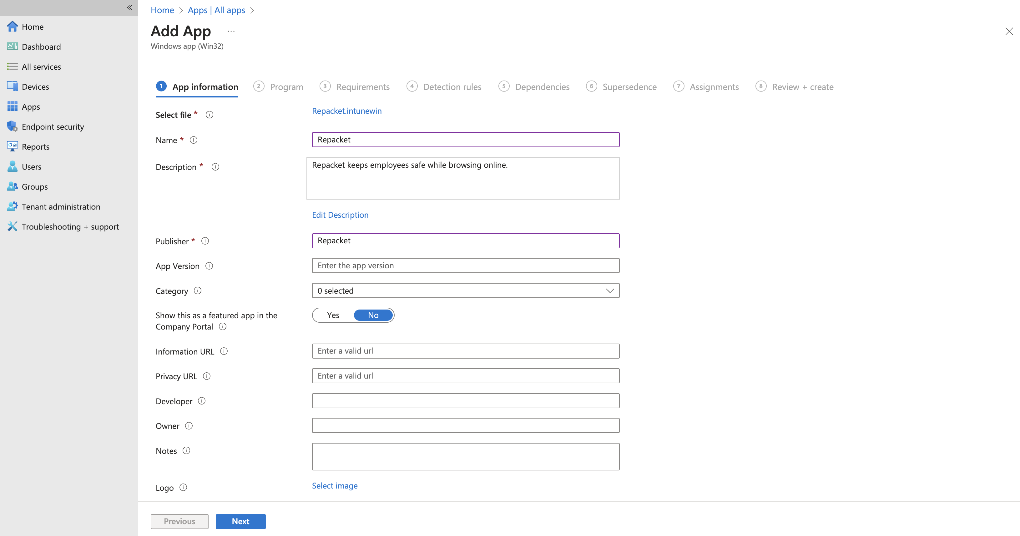 This guide will walk you through deploying Repacket as an application in your Microsoft Intune environment.Deploying