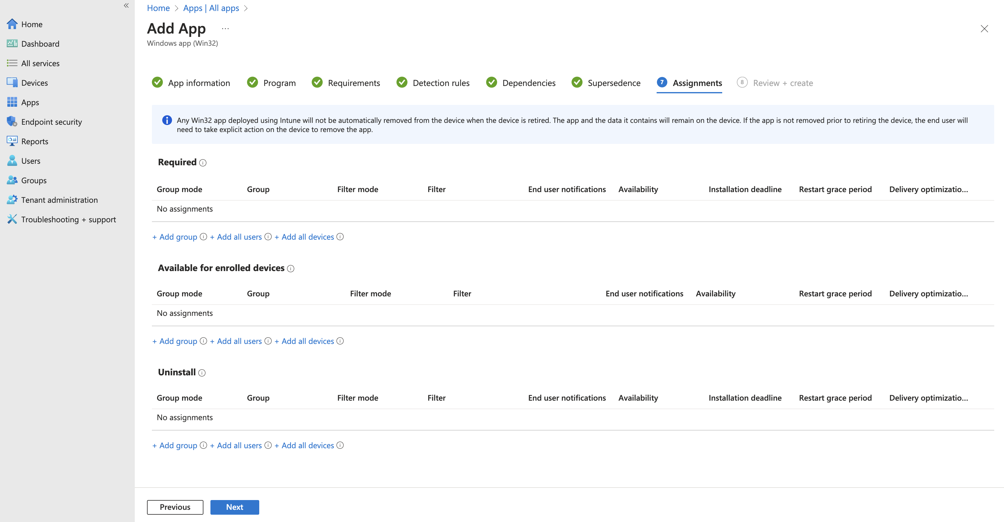 On the assignments screen - you’ll need to choose what users or devices you will deploy Repacket to.
